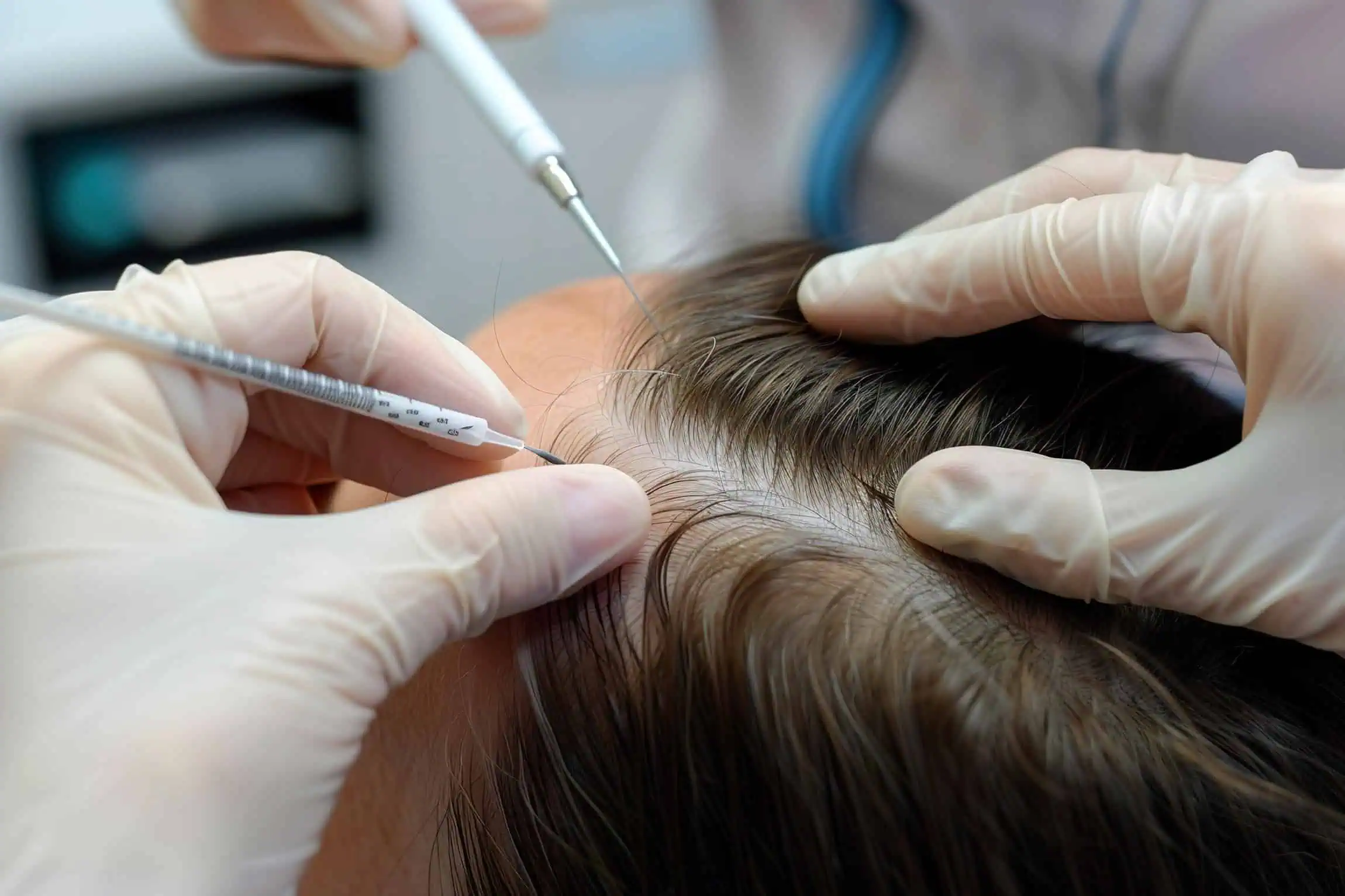 Over a series of 3 or more sessions, 4-6 weeks apart, PRP is injected into the scalp in areas of hair thinning or hair loss.  Over the course of a few months, PRP restores and strengthens active follicles, resulting in healthier and fuller hair.  It is especially effective for hair loss caused by genetics (androgenic alopecia) and can also help with patchy hair loss (alopecia areata).
